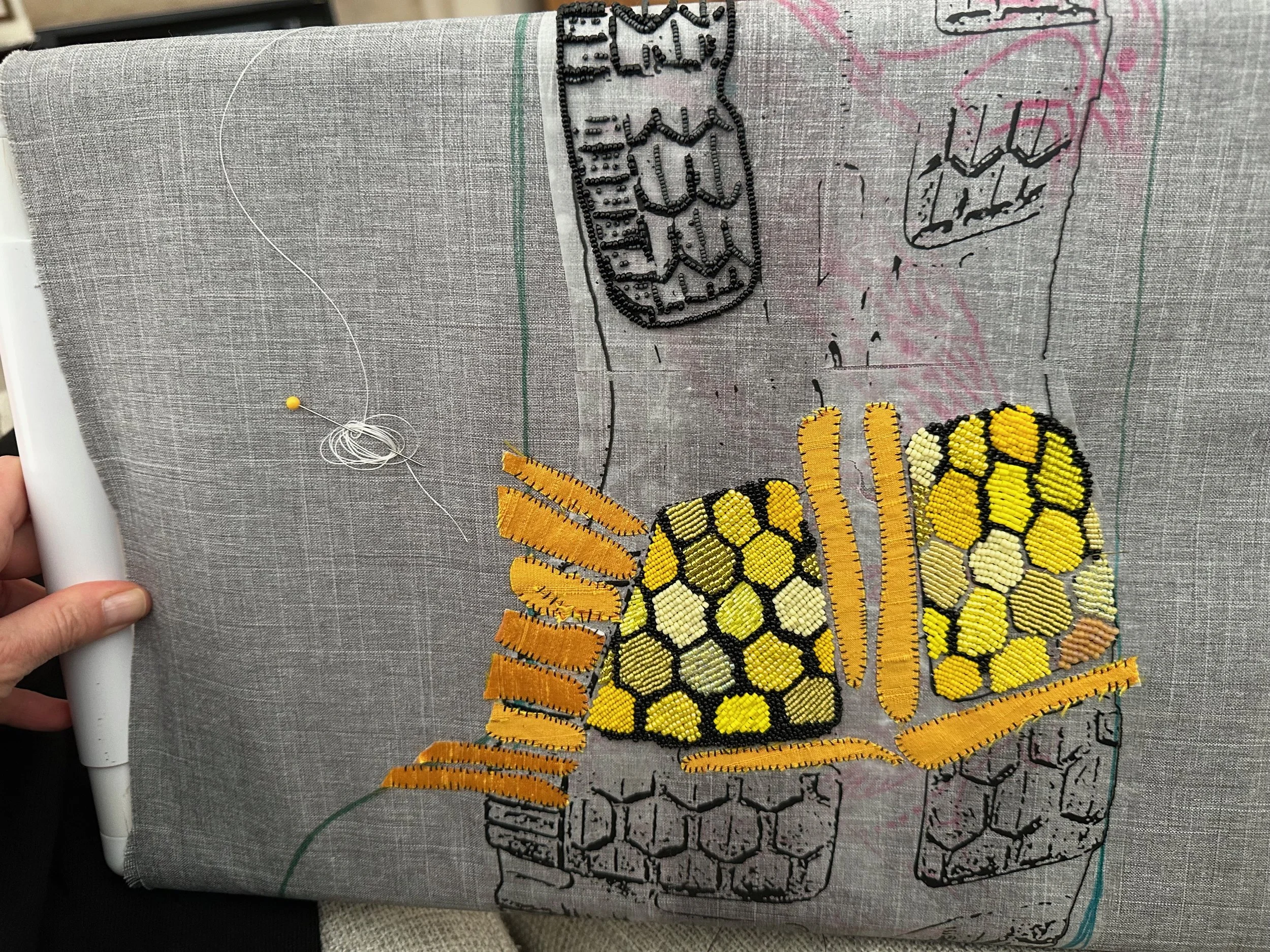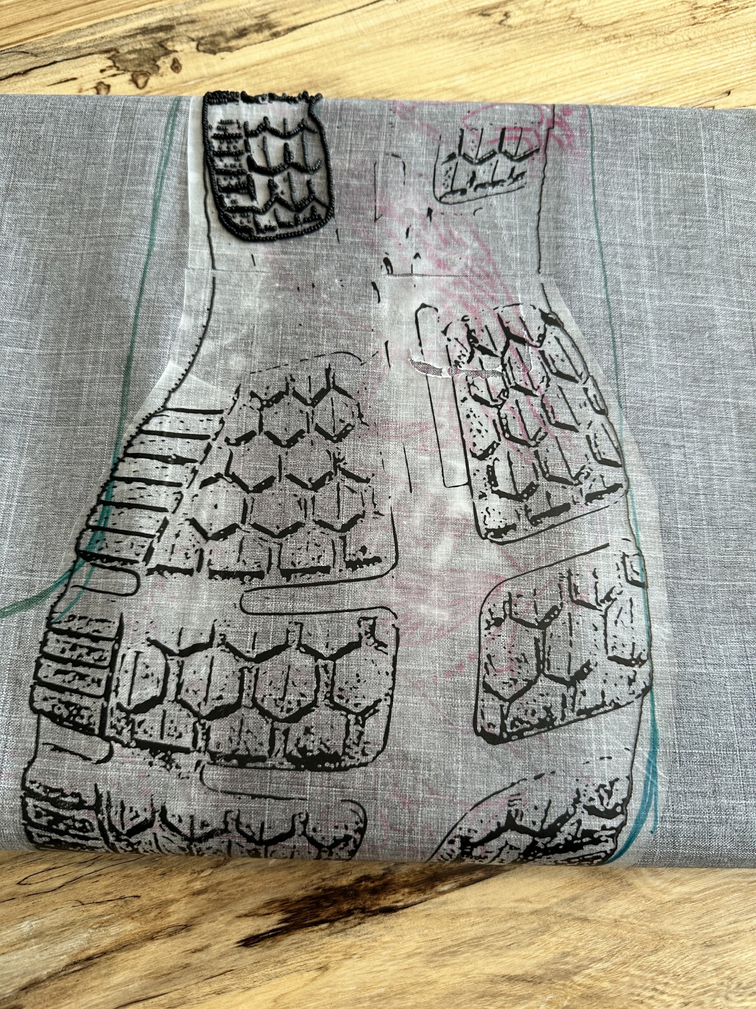 i have two running besties. laurie and michelle. made a piece with michelle’s shoe tread a bit ago. started with laurie’s, but it was more complicated and i got stuck creatively. because there are diamonds and triangles and those are hard. back to it, have reconsidered and hope i have a path forward this time around.