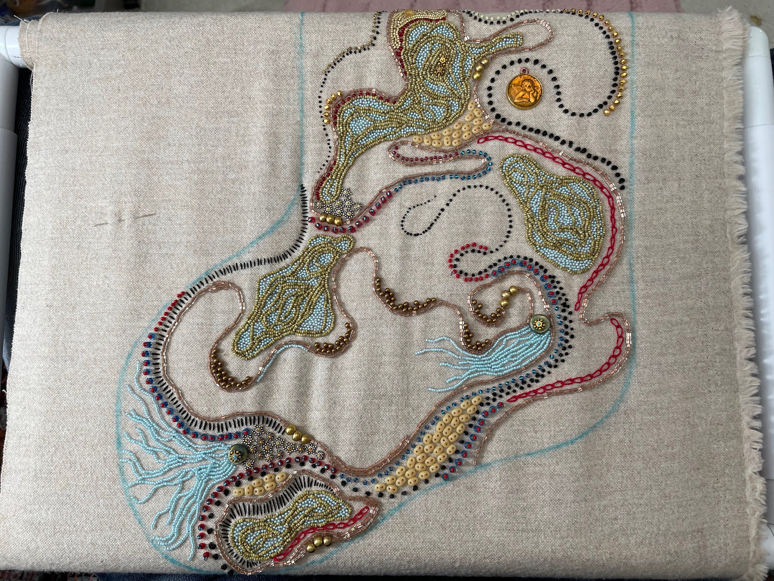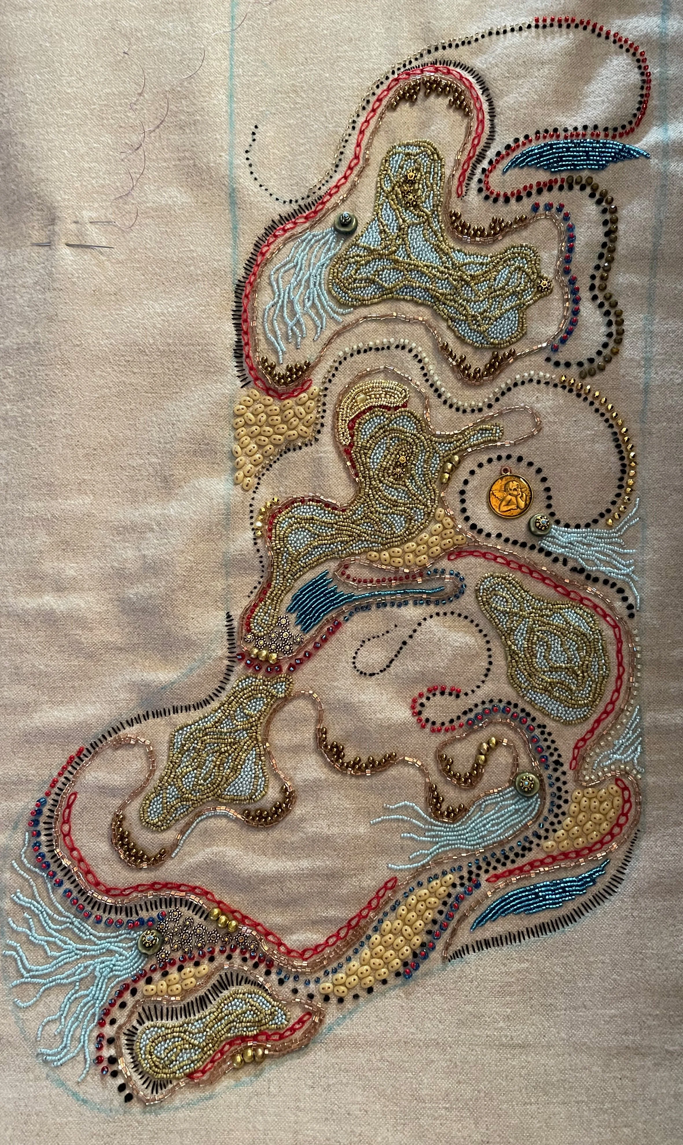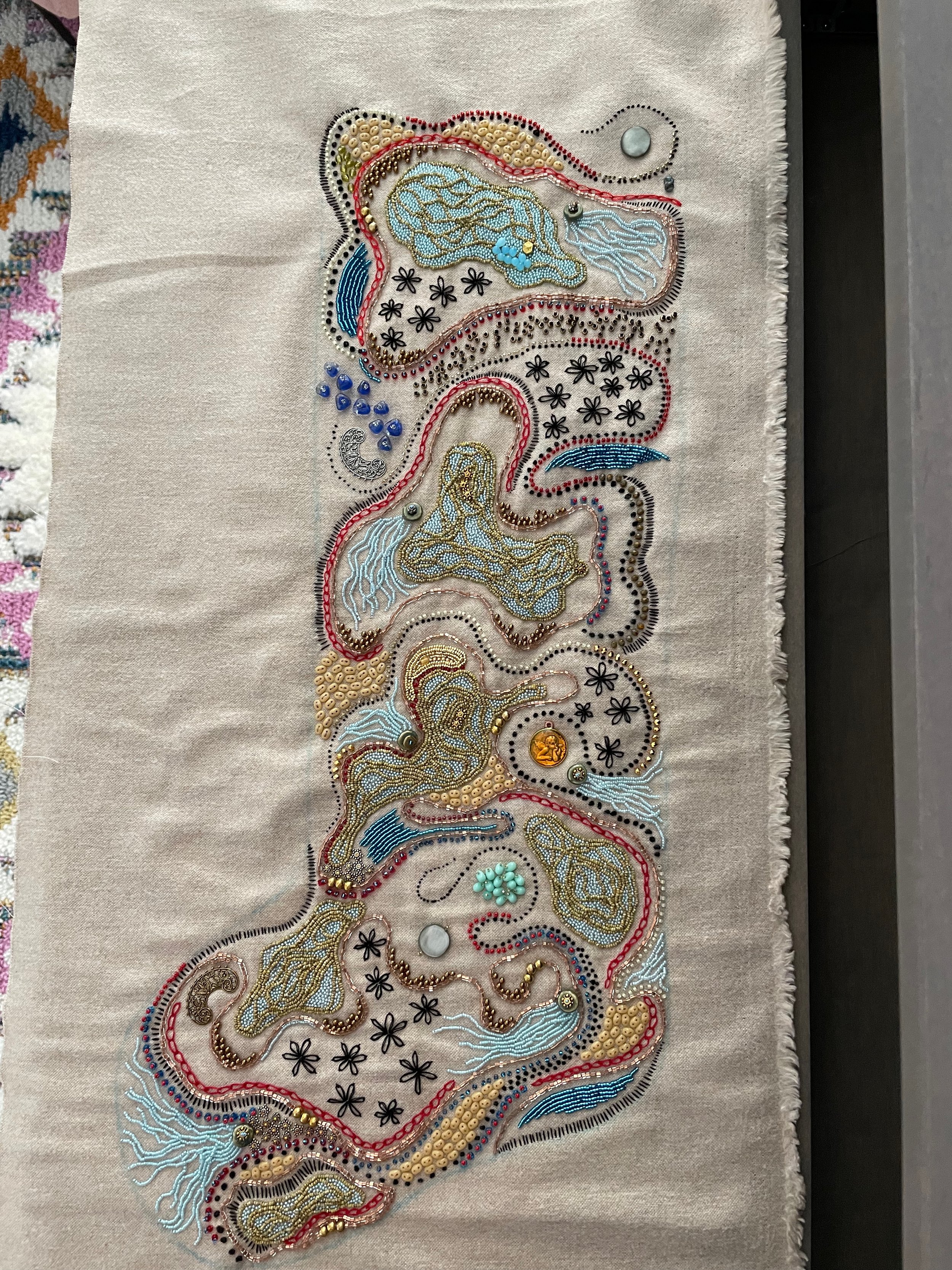 it’s a mix of old threads, stitches and beads. went to santa fe to get a few new beads, amazing trip.